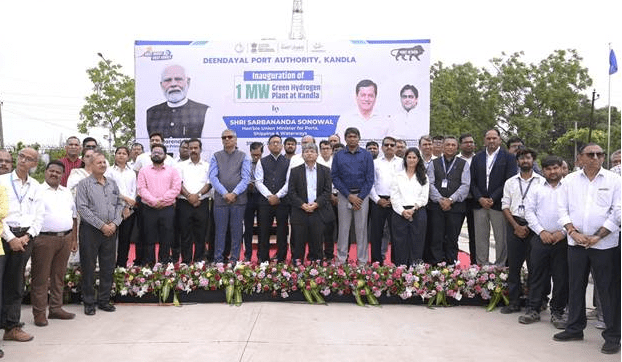 Union Minister for Ports, Shipping and Waterways, Shri Sarbananda Sonowal, inaugurated India’s first “Make-in-India” 1 MW green hydrogen plant at Deendayal Port Authority, marking a significant milestone in the country’s green energy transition.